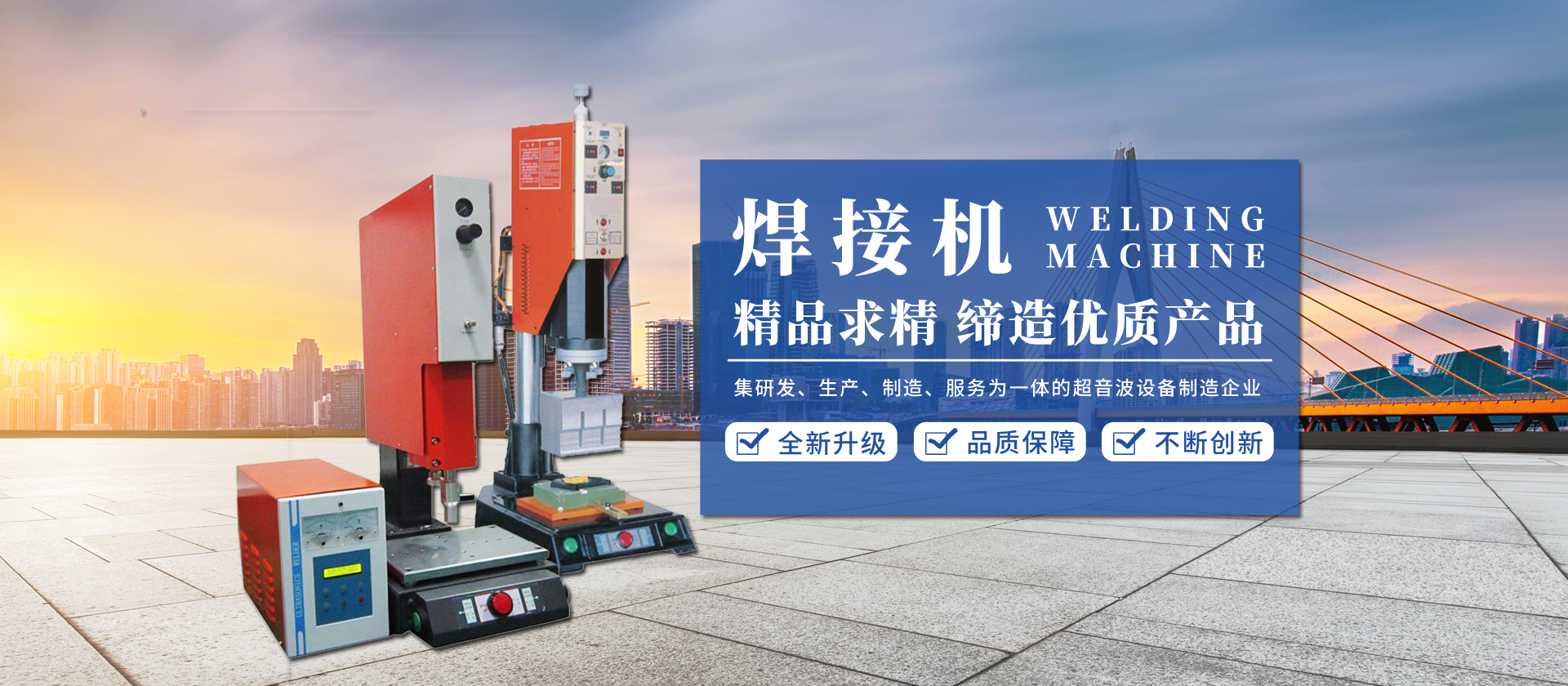 其中產品包括超聲波塑料熔接機,超聲波清洗機,超聲波花邊機,超聲波手術衣專用機,超聲波手焊機,熱板機,熱熔機,旋熔機,震動摩擦焊接機,超聲波金屬點焊機,高頻機,高頻誘導焊接機,內植阻抗焊接機,紅外線焊接機,激光焊接機,微波焊接機等等塑料焊接設備的生產開發、銷售及維修服務,并為客戶設計自動化清洗機線,設計制作超聲波、高周波模具,及超聲波產品焊接代工。